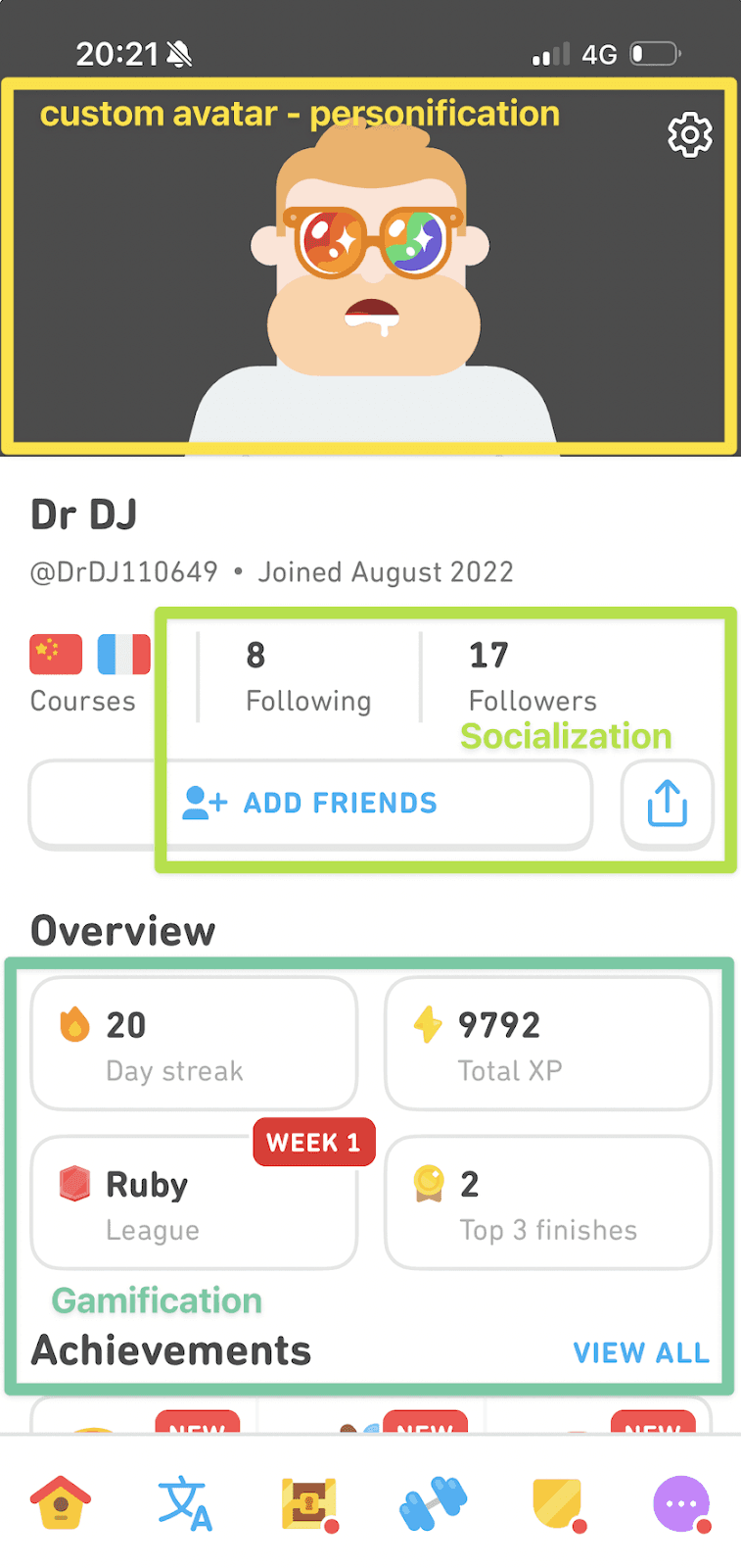 Duolingo makes learning a social activity by letting you create a profile, pairing you up with your friends, and entering you into competitive league. And if you’re an active user, you know how persistent their notifications are.