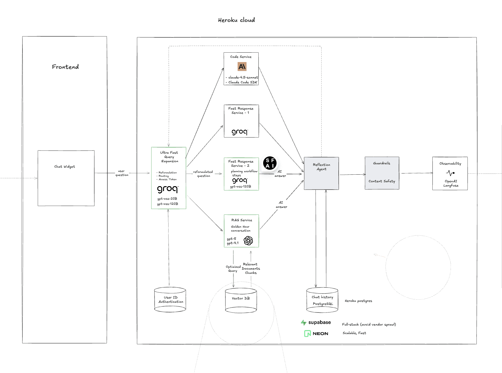 Within weeks, we implemented a production-grade optimization plan spanning async backend refactor, structured output enforcement, routing improvements, and parallel context gathering. This created a clear path to faster responses, higher throughput, and a more scalable foundation for ongoing AI product development.